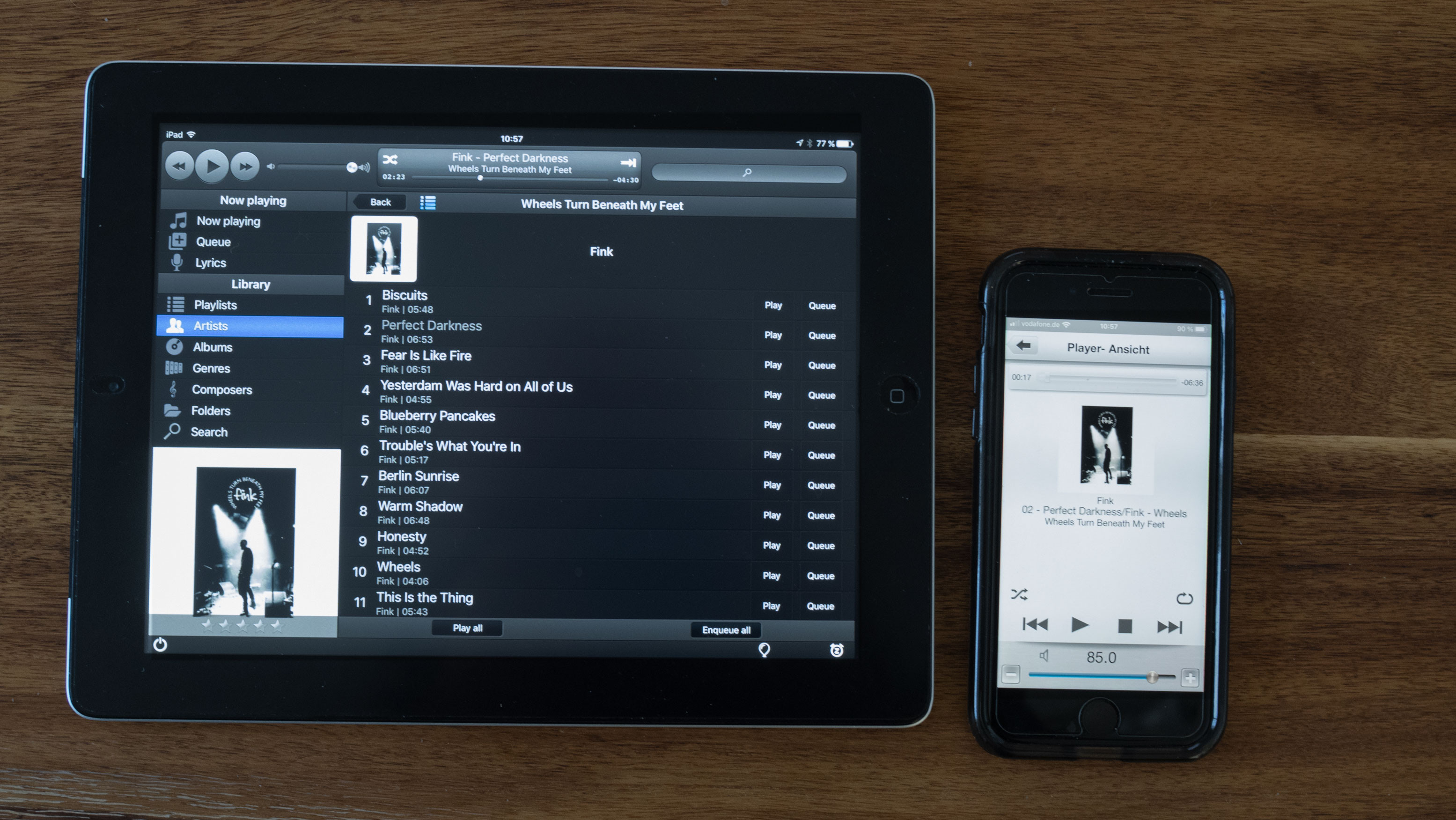Die Premium hing per Cinch-Kabel am Dac/Pre, Zuspieler ist ein Mini-PC mit Foobar. Die Bedienung erfolgte auf dem Pad über die Foobar-App "MonkeyMote".