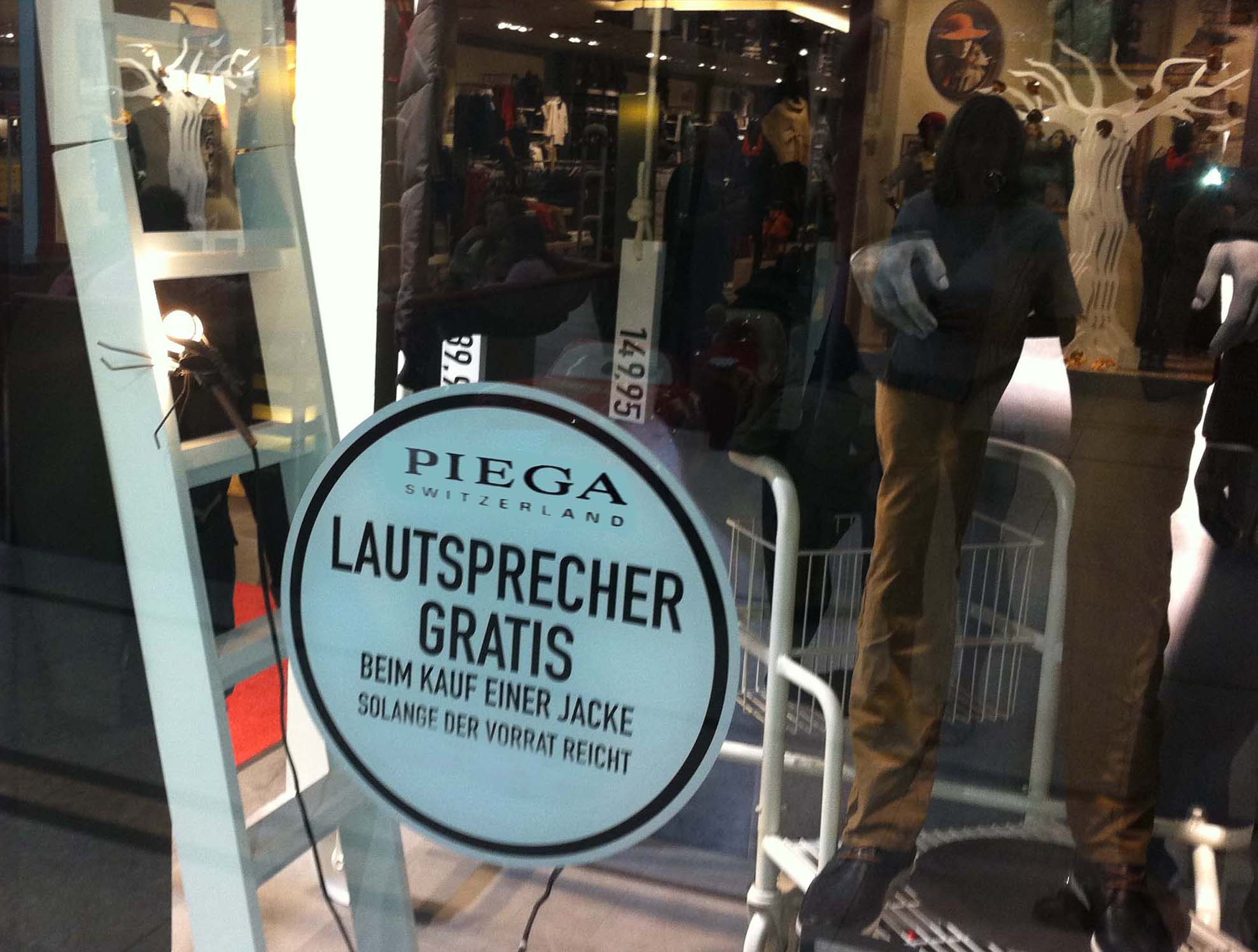 Ich setzte mich natürlich sofort mit PIEGA in Verbindung. Doch, das hatte alles seine Richtigkeit. Beim Kauf einer Jacke gab es eine TMicro 3 als Dreingabe. Man konnte zum Listenpreis dann noch einen zweiten Lautsprecher dazukaufen. Um PIEGA insbesondere in den neuen Bundesländern bekannter zu machen, versuchte man es einmal auf diesem doch recht ungewöhnlichen Wege. Natürlich wurden gleichzeitig den Käufern Hochglanzprospekte sowie ein Händlerverzeichnis in die Hand gedrückt.