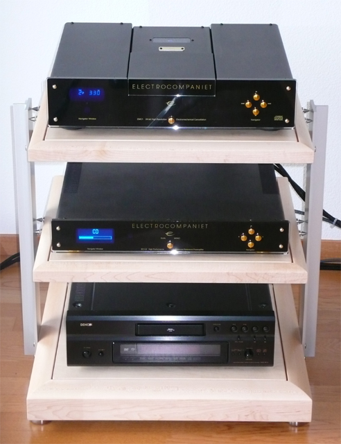 Mehr als ein Jahr lang suchte ich nach der passenden Elektronik für die C8Ltd, denn meine bisherige Kombi Denon DVD / AVR konnte mich nicht wirklich begeistern. In diesem Jahr habe ich mich durch den Elektronik Dschungel gekämpft ... und viele schöne Kombinationen gehört. Das Aha (oder besser Aah) -Erlebnis bescherte mir jedoch die Electrocompaniet Kette. Die steht jetzt bei mir zuhause und besteht aus: