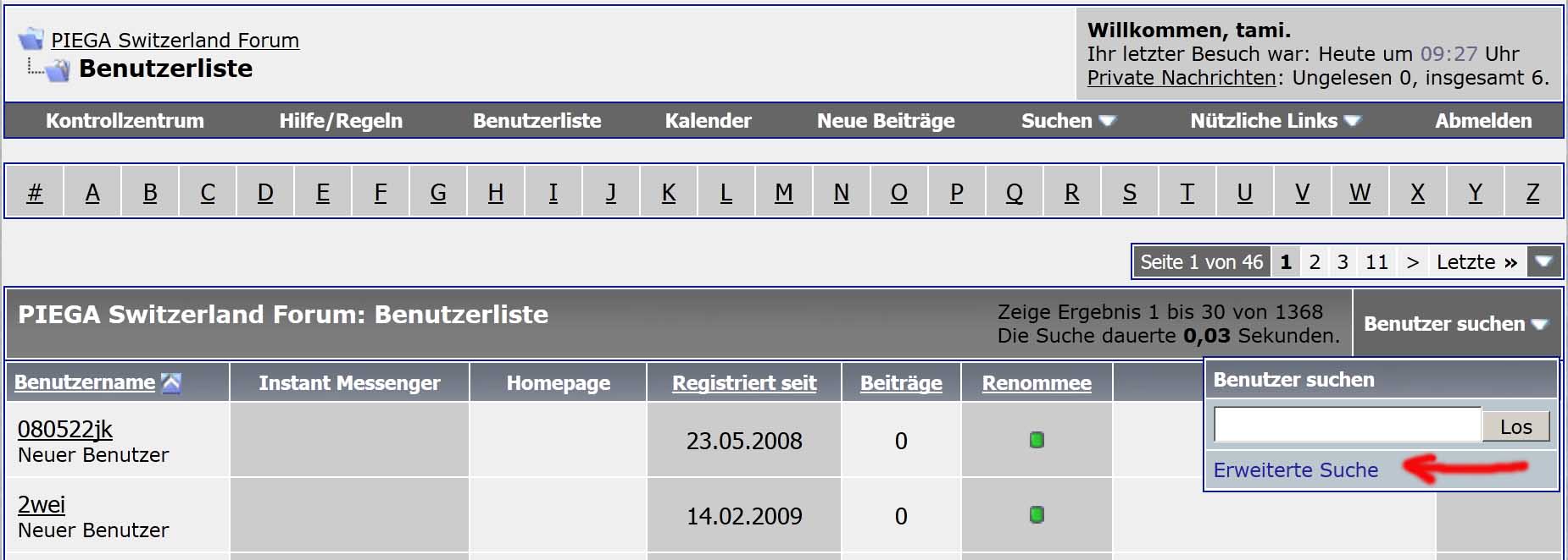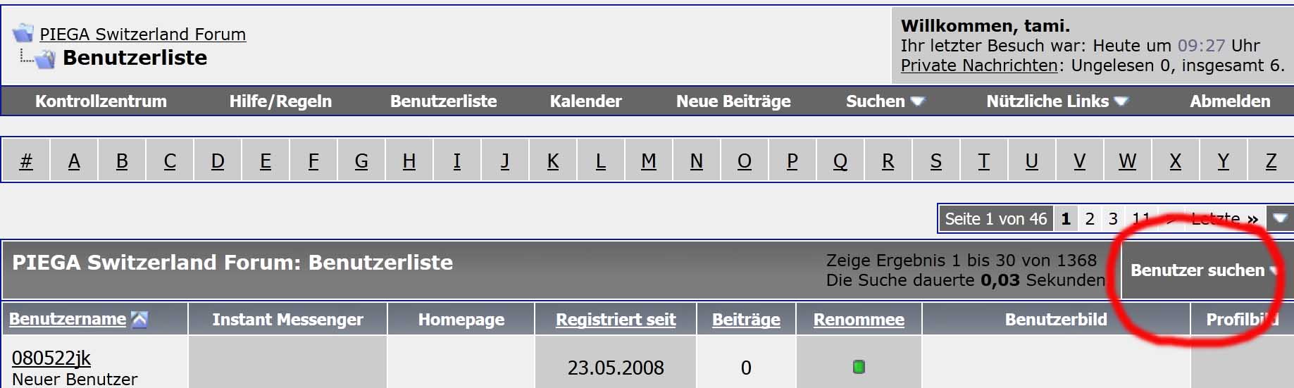 Wie man mit den "bordeigenen" Mitteln des VB-Bulletin im Nutzerprofil sucht: