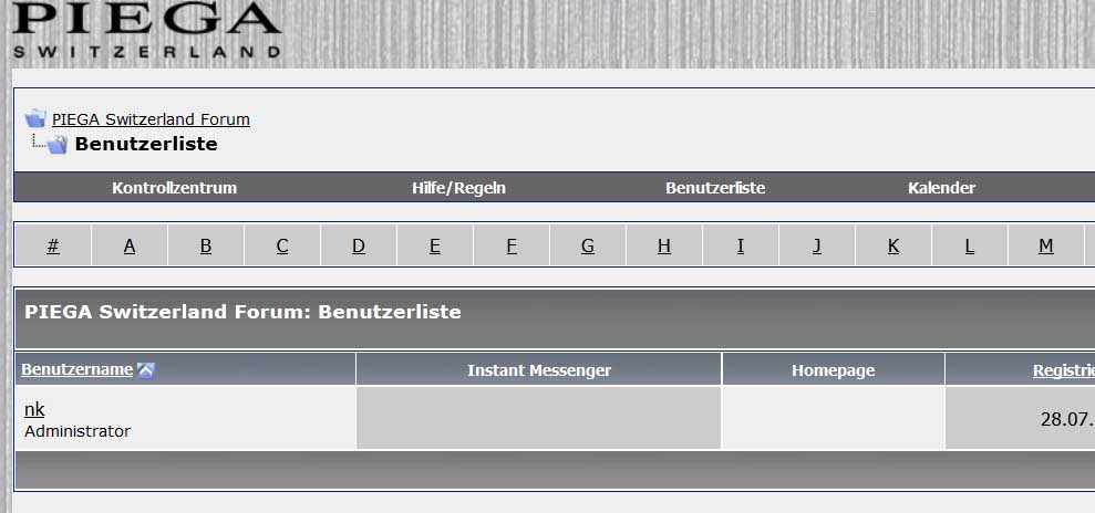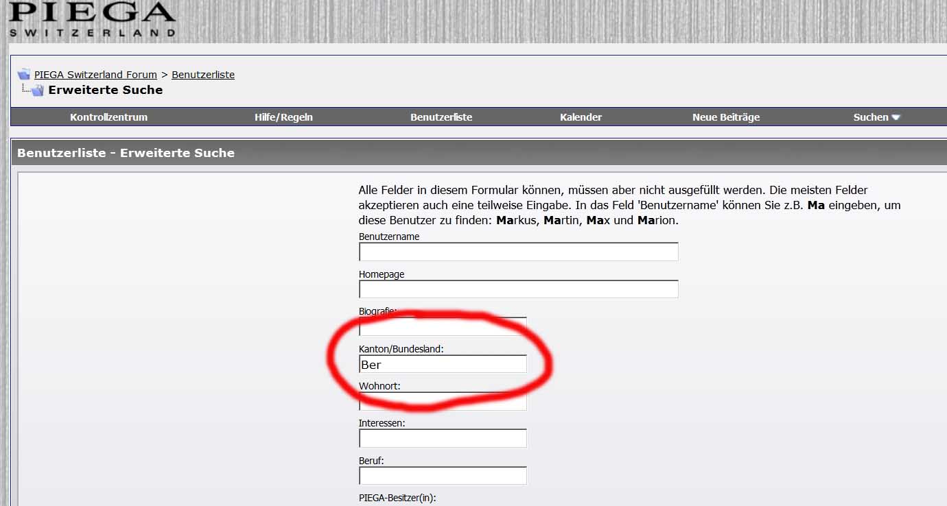 Unser "Ober-Admin" hat die Benutzerliste im optischen Erscheinungsbild angepasst, so dass man jetzt PIEGA-Besitzer und Wohnort auf einen Blick erkennt.