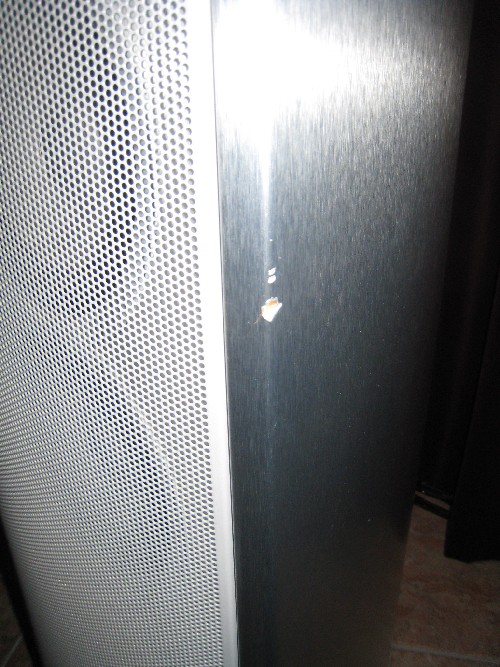 Unfortunately, there is no way to repair the aluminum cabinet. A paint job is also difficult because the rubber seal on the front cover can not be removed. The best thing is you are talking to a good local painter. Sorry.