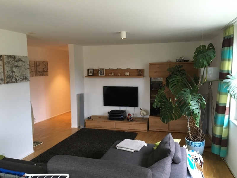 Ich habe mal den Grundriss des Wohnzimmers angehängt sowie die Seite mit den Boxen fotografiert. Die Boxen stehen recht nah an der Wand. Auf der rechten Seite gibt es Fenster bis ca 90 cm über dem Boden, gegenüber grosse Fensterfront (bis zum Boden). Die Wand dahinter ist eine Gipskartonwand, recht dick, aber eben kein Beton. Zwischen Balkon und dem Backofen (BA) ist ein 80 cm Massivholz Bücherregal aufgestellt, vom Boden bis zur Decke. Die Couch sieht man auf den Foto. Der Abstand der beiden Lautsprecher beträgt ca 3.5 m, der Hörabstand ein wenig über 4 m.