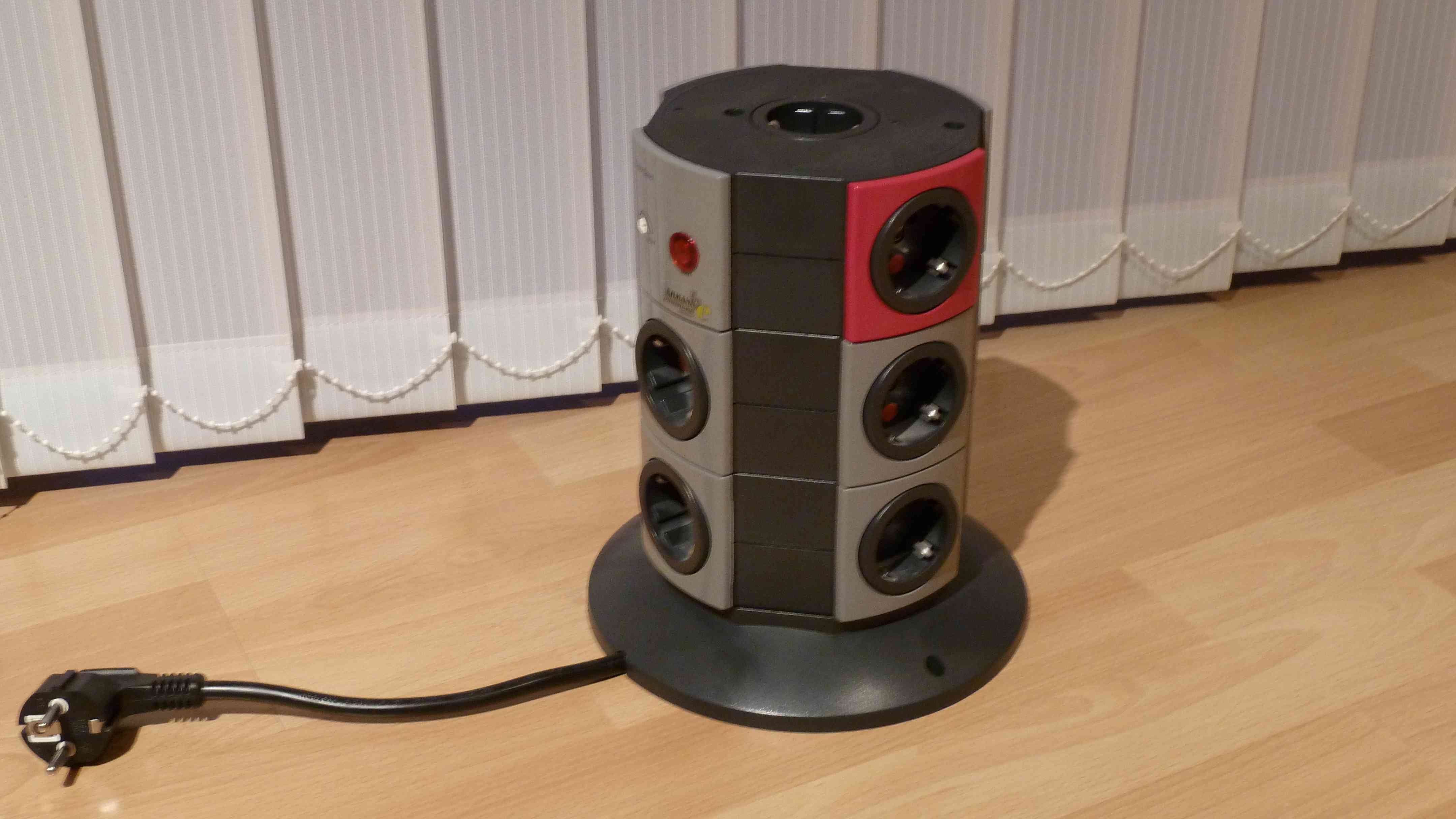 Könnte jetzt mit einer Leiste hinter das Rack gehen und mit 2 kurzen Kabeln zu den Geräten. Oder aber mit je 2,5 und 3,0 Meter langen Kabeln direkt von Steckdosen zu den beiden Geräten.